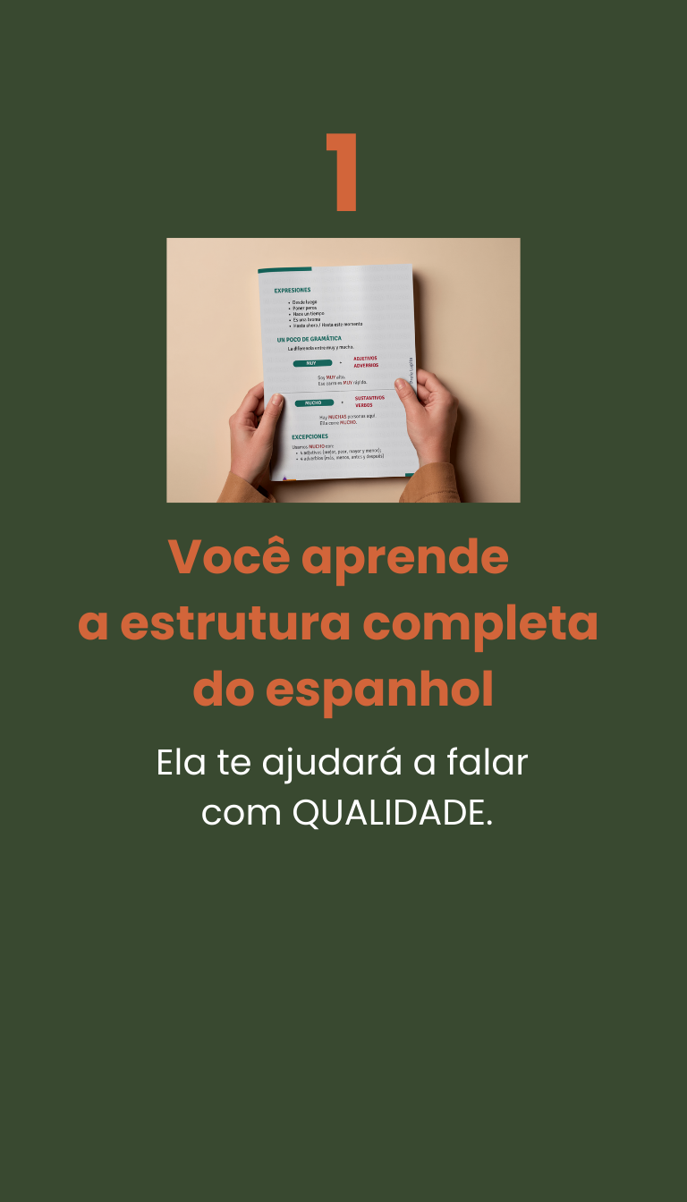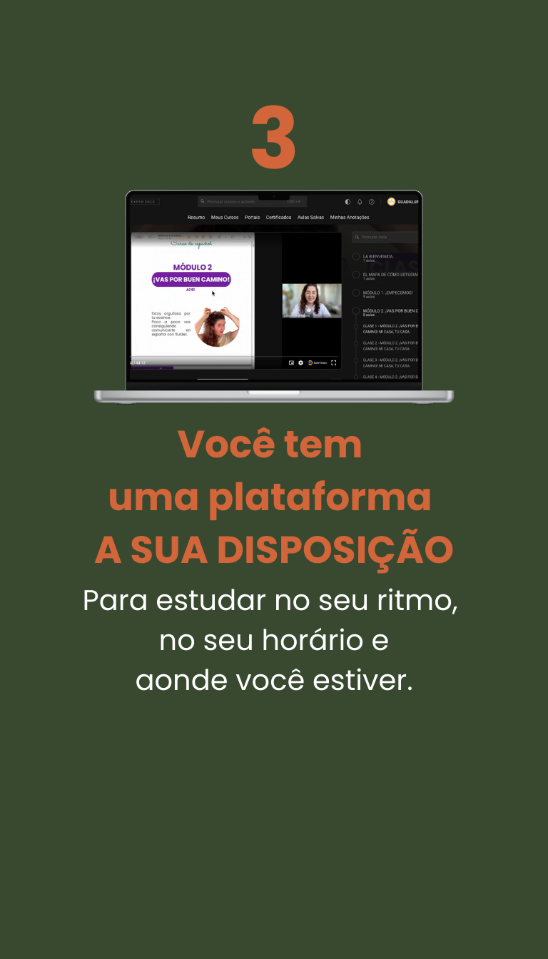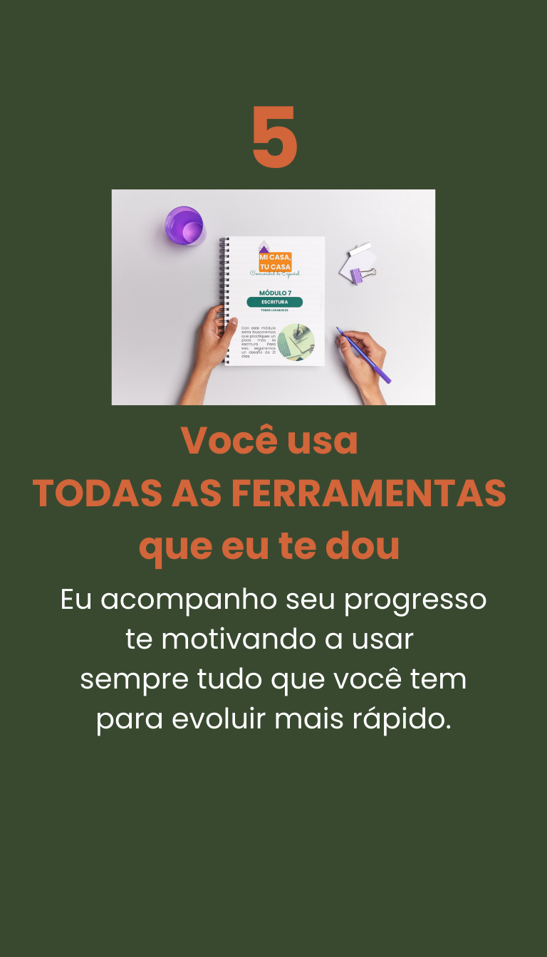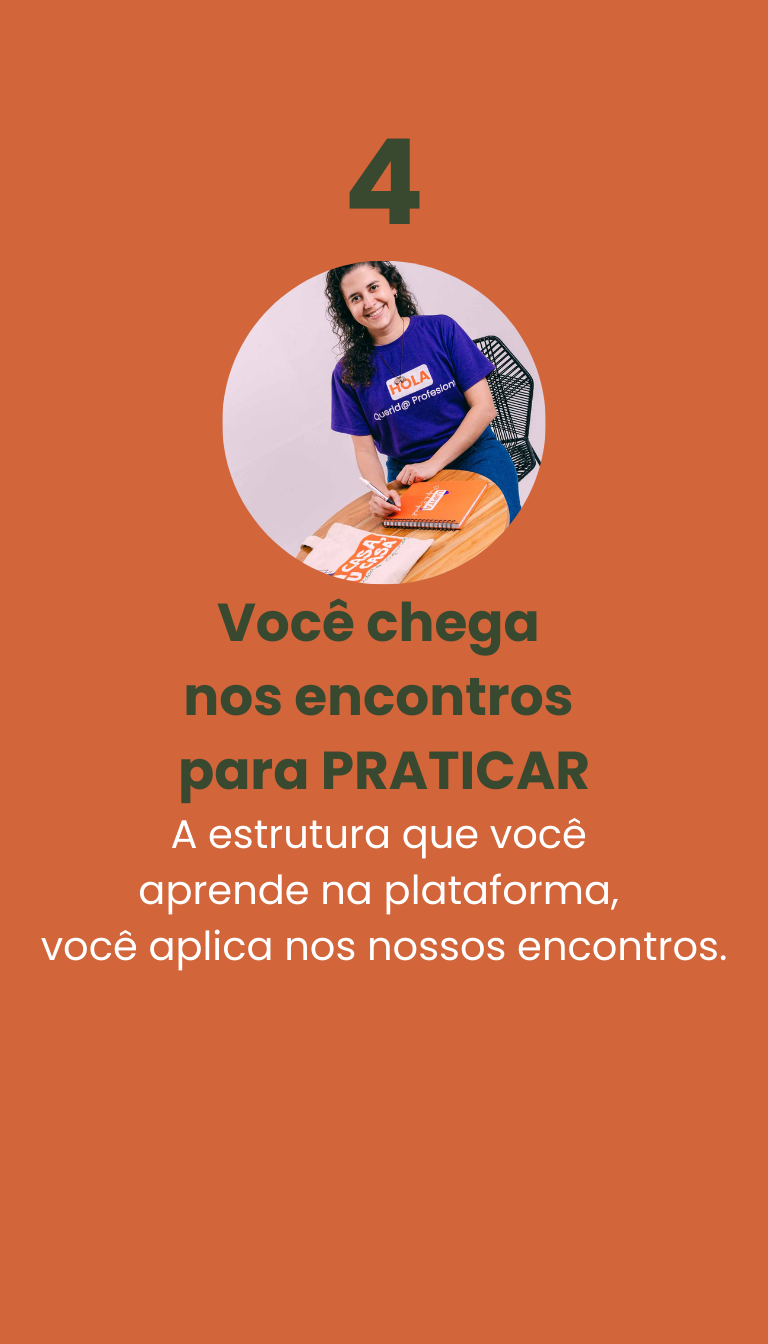 O português que aprendi foi na prática e conhecendo a estrutura. É por isso que meu método contém exatamente isso: uma estrutura clara e encontros cheios de prática. Porque de nada serve você aprender 199.999 palavras se não vai aplicá-las. É isso que meus alunos também gostam de ter: um espaço para treinar o espanhol da vida real, pois, nos nossos encontros, somos pessoas falando sobre a realidade das nossas vidas, não diálogos de livros sem sentido.Eu sei que você é um profissional ocupado e valorizo o seu tempo. Agradeço por estar aqui e espero ter você na comunidade para aprender a falar o espanhol da vida real.